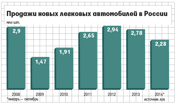 По прогнозу Моженкова, продажи в 2014 г. могут достигнуть 2,4-2,45 млн новых автомобилей, а в 2015 г. будет продано 2 млн.