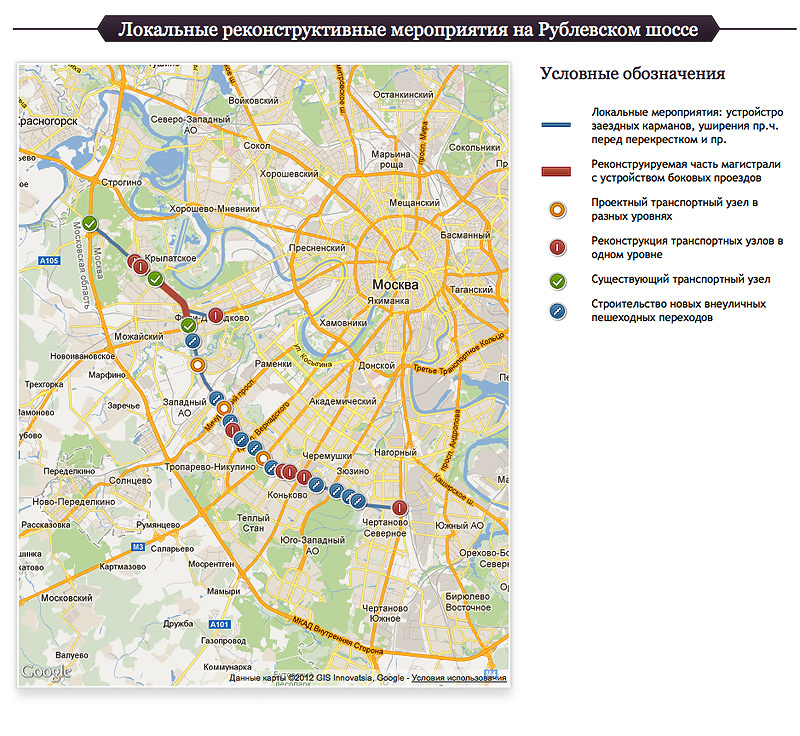Как заявлял в интервью "Коммерсанту" руководитель столичного стройкомплекса Марат Хуснуллин, прирост автопарка Москвы составляет 7-8% в год. Чтобы увеличивать до аналогичных показателей протяженность дорог, которая сейчас составляет более 4000 км, Москве необходимо строить ежегодно 280-320 км новых дорог. По словам чиновника, "это физически невозможно". "В Москве автотрассы занимают всего 9% от общей территории города, в то время как в крупных мегаполисах мира этот показатель в два раза выше. Поэтому на первом этапе мы планируем частично снять пробки на трассах за счет приведения в порядок существующих магистралей, строительства паркингов, за счет управления дорожным движением и оптимизации использования существующей дорожной сети", - добавил он.
