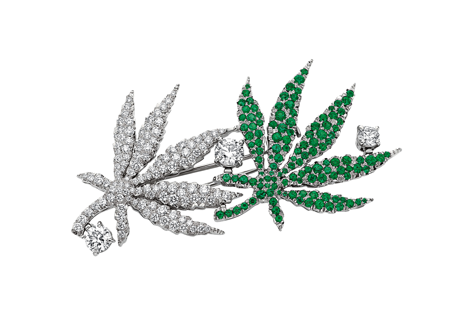 Надо подчеркнуть, что и в таком дизайне ни один драгоценный камень не появляется просто так – все обдуманно, во всем есть свой смысл. С другой стороны, интересно, что при втором способе из одного мотива можно придумать сразу несколько украшений – так неожиданно родились фламинго или вариации на листья марихуаны...