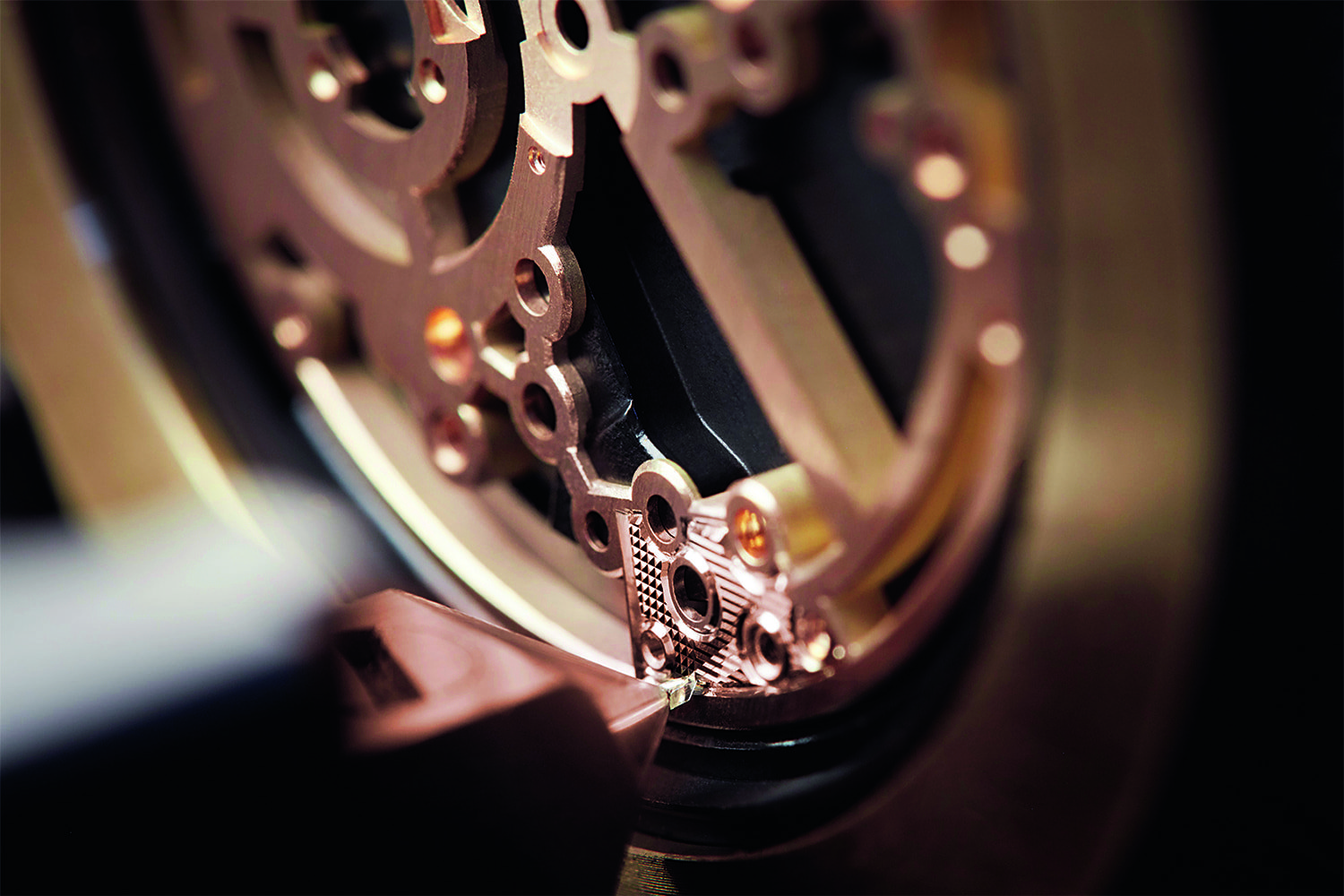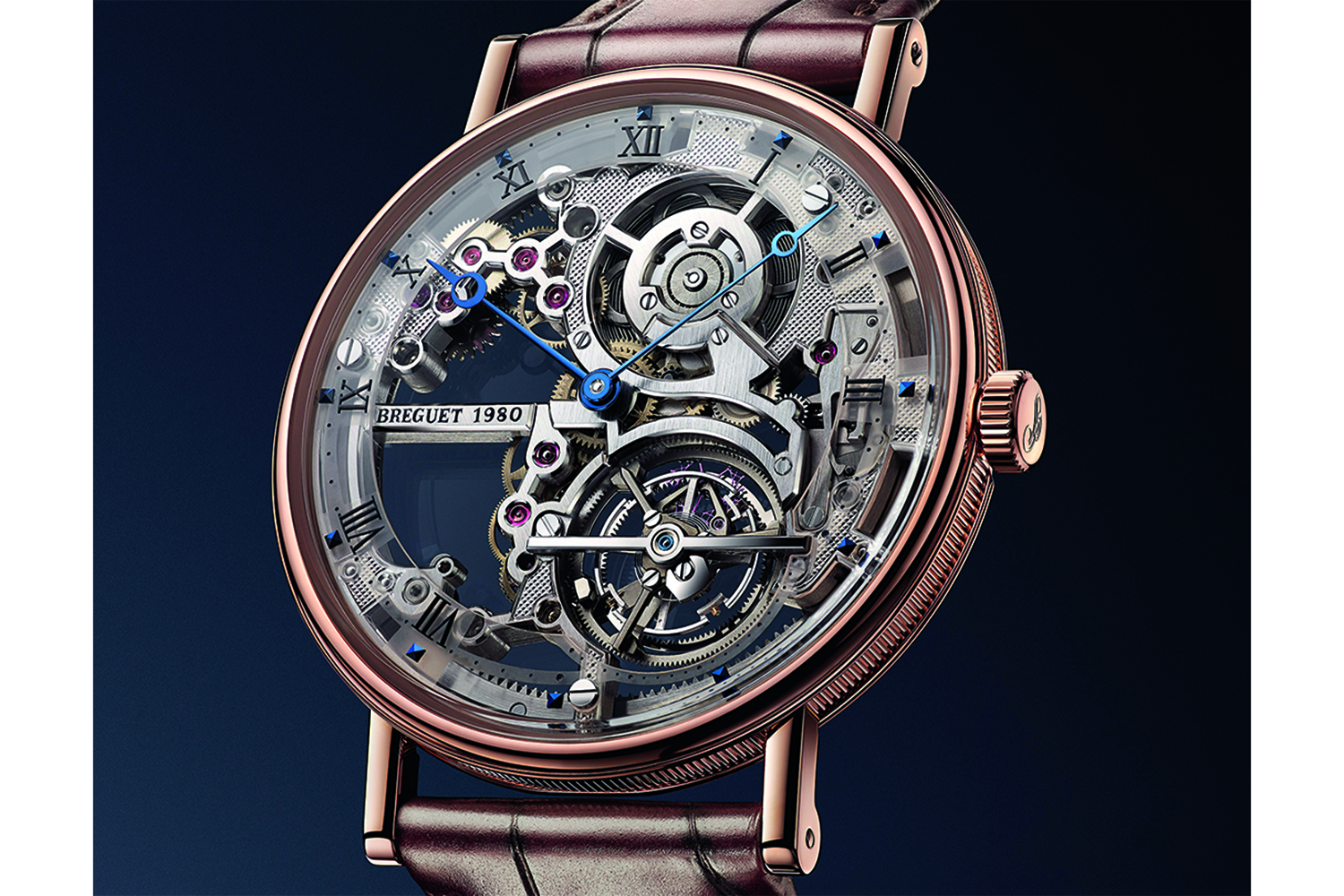 Облик часов Breguet Classique Tourbillon Extra-Plat Squelette 5395 определил ультратонкий, толщиной всего 3 мм, автоматический калибр 581с турбийоном. Инженеры Breguet убрали из него половину материала и получили красивейшую скелетонизированную ажурную архитектуру механизма из 18-каратного золота.