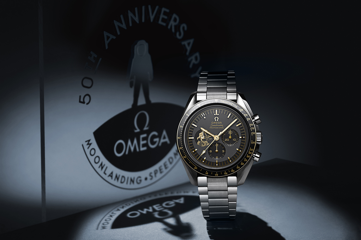 Часы Apollo 1150th Anniversary Limited Edition посвящены полувековому юбилею первого приземления человека на Луну в 1969 году, еще и в часах Speedmaster. По этому знаменательному поводу безель модели, ее часовые индексы, винтажный логотип и стрелки созданы из нового запатентованного 18-каратного сплава золота Moonshine, более бледного, чем традиционное желтое золото. А на отметке «9 часов» на фоне циферблата серого цвета в технике гравировки на золоте Moonshine изображен астронавт Базз Олдрин, спускающийся на Луну со своего летательного аппарата Eagle. Также был усовершенствован механизм Co-Axial Master Chronometer Calibre 3861, и теперь у него есть функция остановки секундной стрелки и сильнейшая антимагнитная защита.
