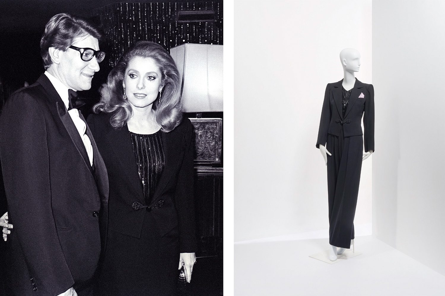 Гардероб Катрин Денев включает в себя множество выдающихся изделий великого кутюрье от нарядов конца 1960-х годов, продававшихся в парижском бутике Yves Saint Laurent Rive Gauche, до экземпляров из последней коллекции Сен-Лорана 2002 года. Во многих из этих роскошных вечерних нарядов актриса появлялась на красных дорожках кинофестивалей в Каннах и в Венеции, и на церемонии вручения премии «Оскар». На торгах будет представлено и несколько черных смокингов – Катрин Денев была одной из первых знаменитостей, прославивших эти легендарные брючные двойки от Ива Сен-Лорана.