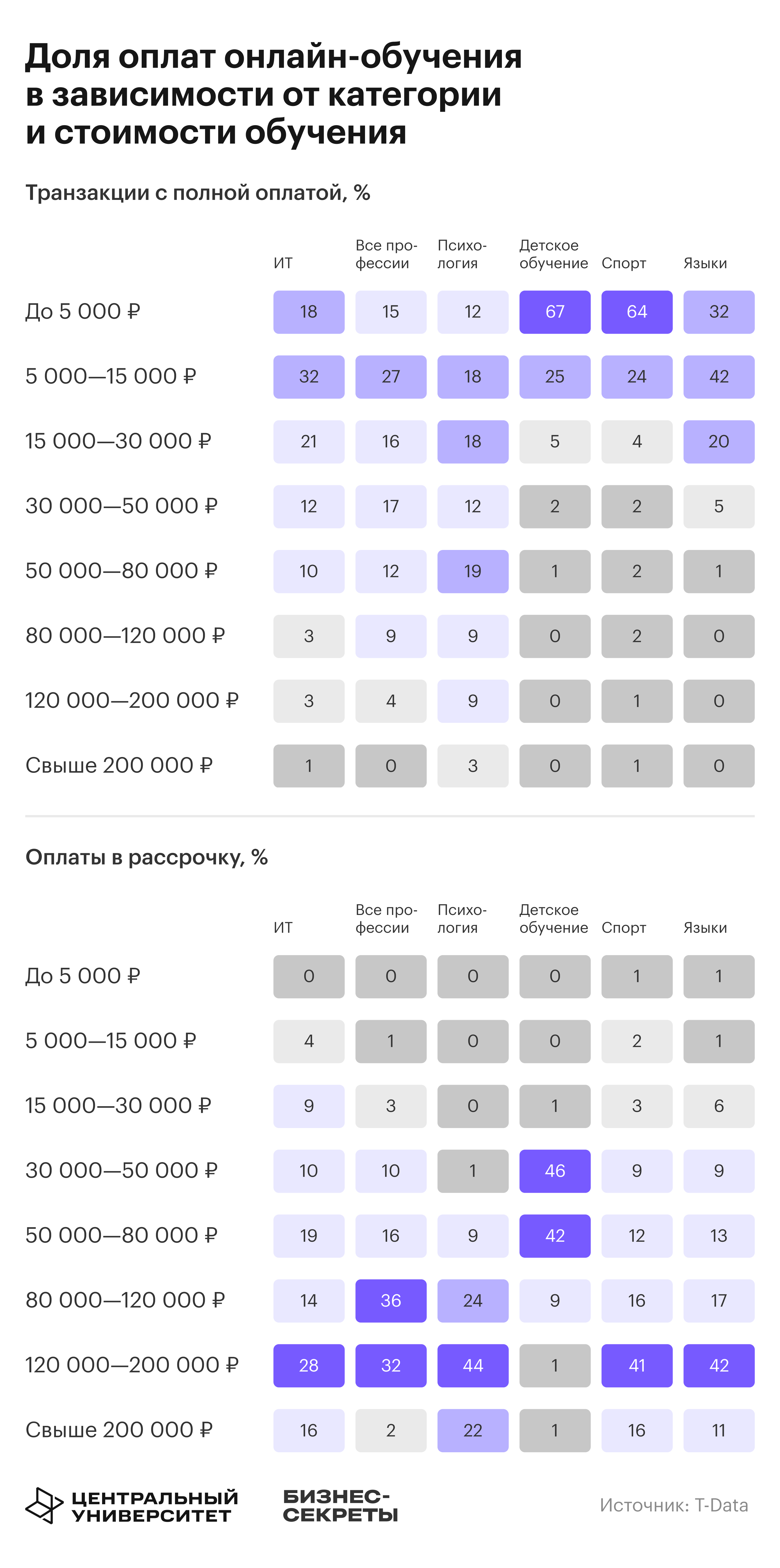 Лаборатория практических бизнес-исследований Central Data Lab (совместная лаборатория Центрального университета и аналитического проекта Т-Банка T-Data) вместе с редакцией Бизнес-секретов изучили обезличенные данные по оплатам более 52 млн россиян, чтобы понять как изменился спрос на онлайн-обучение в 2025 году и какие сценарии оплаты используют разные сегменты аудитории.