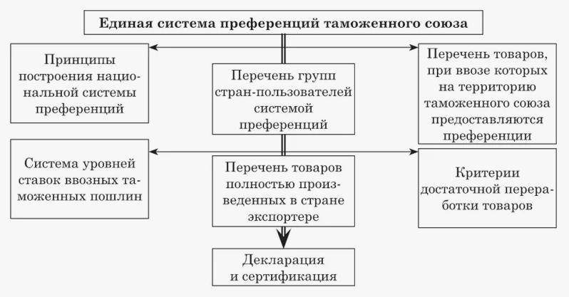Административное сотрудничество точно регламентирует требования к предоставляемой документации в части оформления их участниками ВЭД. В случае несоблюдения требований к правильному оформлению документов, тарифные преференции не предоставляются. Единая система преференций Таможенного Союза изображена на рисунке 1.