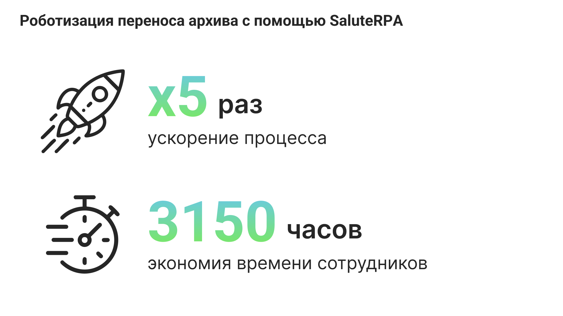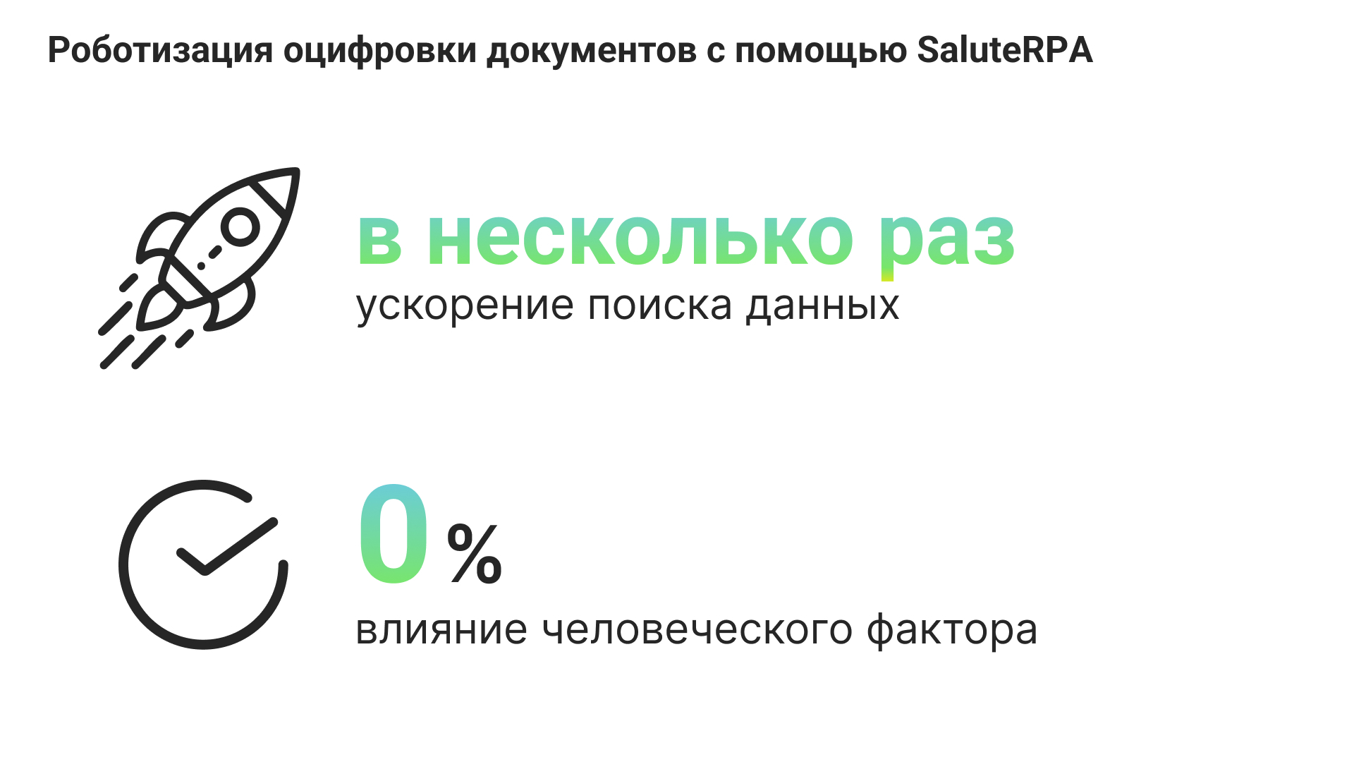 «Благодаря цифровой трансформации процессов, основанных на решении SaluteRPA, нам удалось значительно увеличить скорость выполнения каждой операции, а также сократить до предельного минимума ошибки, связанные с человеческим фактором».