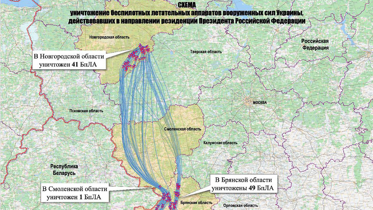 Минобороны раскрыло детали атаки Украины на резиденцию Путина