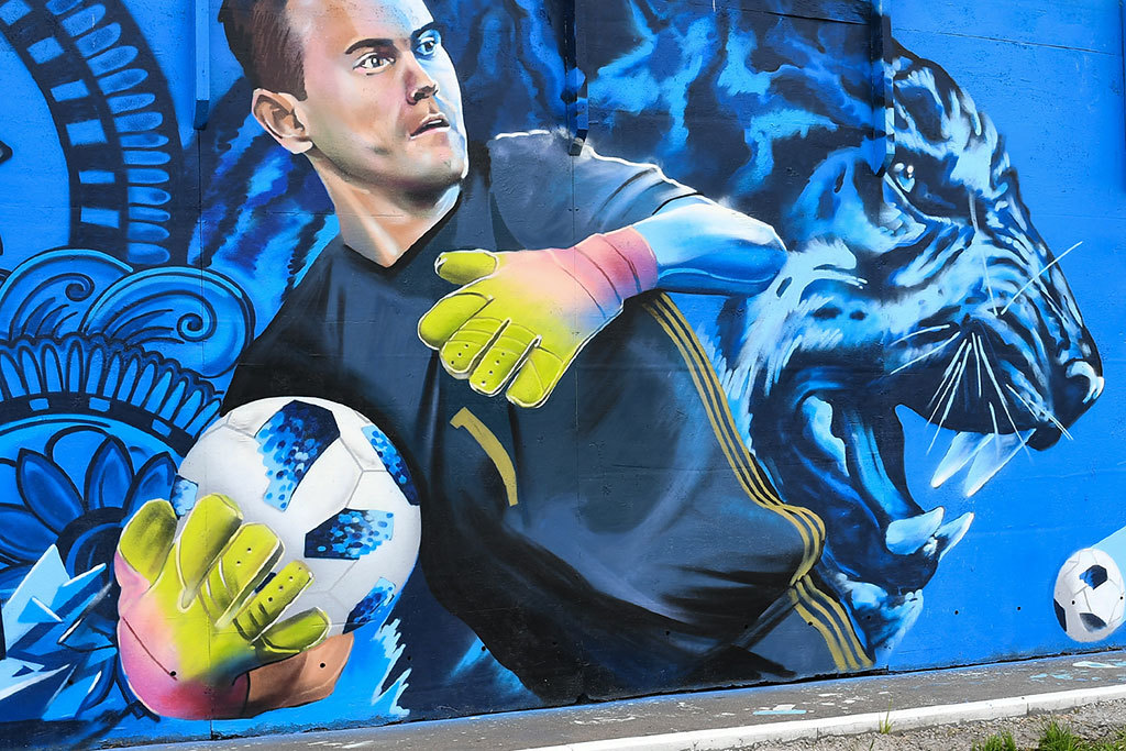 Граффити с изображением футболистов в российских городах