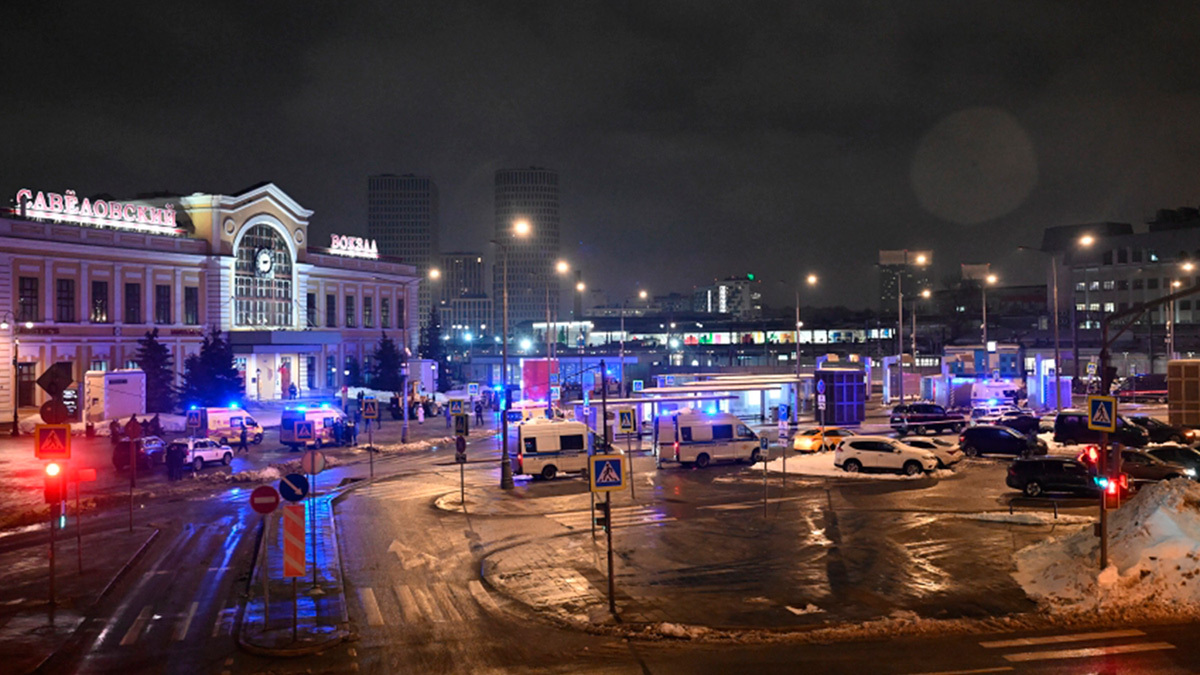 Кадры с места подрыва автомобиля Госавтоинспекции возле Савеловского вокзала