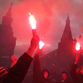 На Манежной площади прошел флэш-моб, напоминавший погром