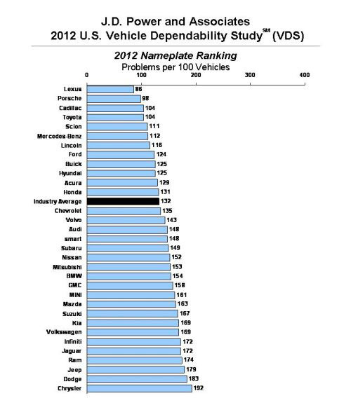 Источник: J.D. Power and Associates 2013 U.S. Vehicle Dependability Study 2012