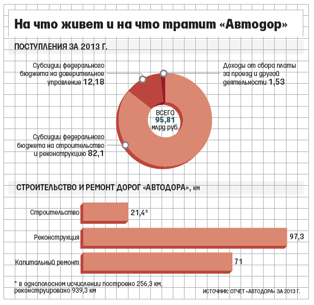 Госкомпания «Автодор» отчиталась за 2013 г. Это четвертый год ее работы, под управлением госкомпании три действующие федеральные трассы (М1 «Беларусь», М3 «Украина» и М4 «Дон»), ей также поручено строить платную автомагистраль М11 Москва - Санкт-Петербург и Центральную кольцевую автодорогу.