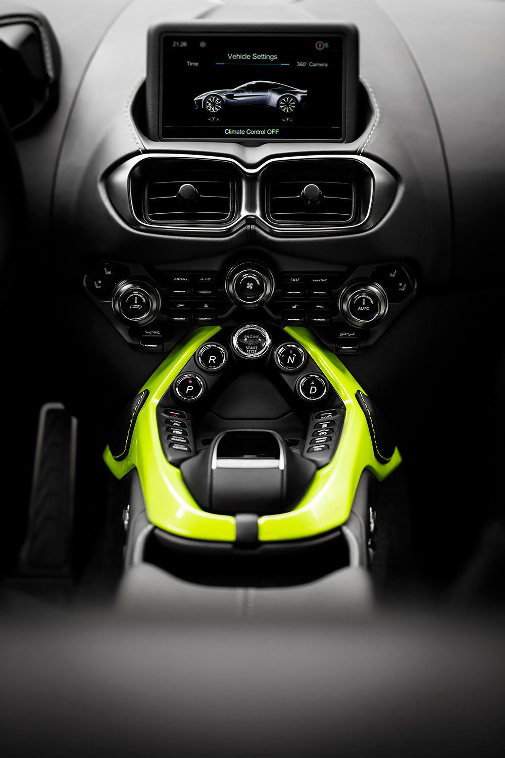 Переключение режимов коробки передач традиционно кнопочное. Daimler, владеющий 5% пакетом Aston Martin, также поставляет британцам электронику, в т. ч. мультимедийную систему
