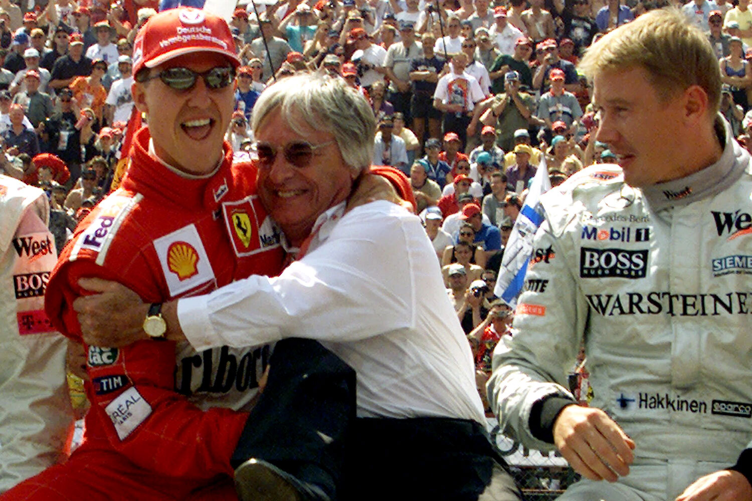 На фото слева направо: семикратный чемпион мира «Формулы-1» Михаэль Шумахер, Берни Экклстоун и двукратный чемпион мира Мика Хаккинен.