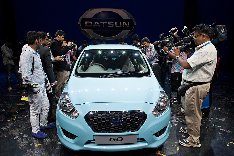 Nissan представила первую модель возрожденного бренда Datsun — хетчбек Go, - предназначенный для рынка Индии. Пятидверный автомобиль длиной 3785 мм будет оснащаться двигателем 1,2 л в паре с пятиступенчатой механической коробкой передач. Стоимость машины будет меньше 400 000 рупий (217 600 руб.), сообщила компания. Продажи машины начнутся в начале 2014 г.
