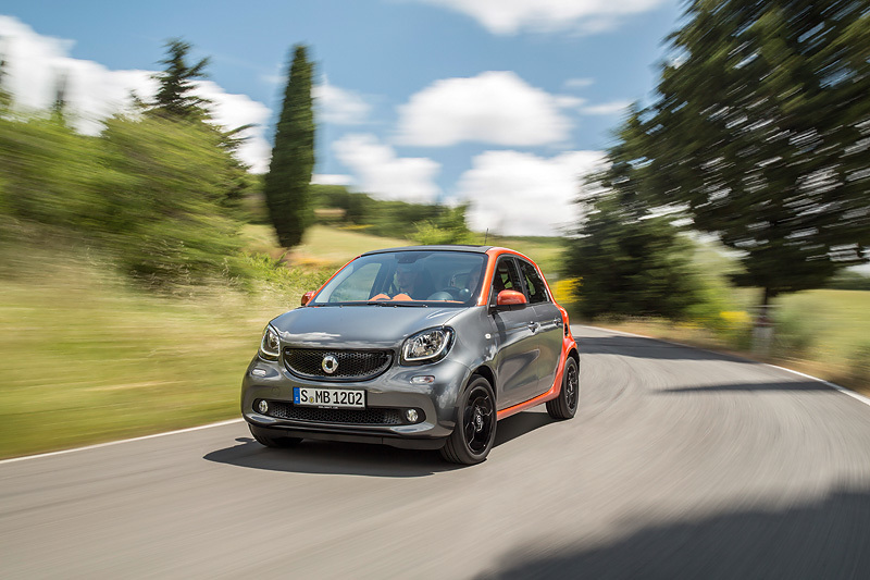 Daimler представил новые поколения двухместного Smart Fortwo и четырехметного Smart Fortwo. Модель ForFour станет второй моделью бренда впервые с 2006 г., когда Daimler прекратил производство четырехместной модели. Новый ForFour разработан совместно с французской Renault: автомобиль делит платформу (с задним расположением силового агрегата и приводом на задние колеса) с третьим поколением Renault Twingo.
