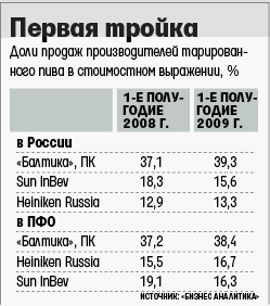 Чистая прибыль Heineken N.V. в 2008 г. упала почти в 4 раза до 209 млн евро с 807 млн евро годом ранее, говорится в годовом отчете компании. В России за первое полугодие выручка концерна снизилась на 21%, напоминает аналитик УК «Финам менеджмент» Максим Клягин опубликованные ранее данные компании.