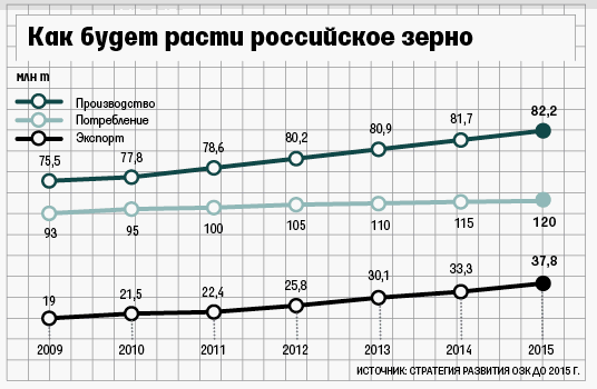 Реализовав все эти проекты, ОЗК рассчитывает к 2015 г. экспортировать до 16 млн т зерна, что составит 30–40% общероссийского экспорта зерновых и 10% в объеме мировой торговли зерном. Действия ОЗК, обещает Левин, «не будут направлены на ущемление интересов частных экспортеров».