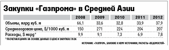 «Газпром» решил, что слишком много тратит на чужой газ: в 2010–2012 гг. он готов вчетверо сократить закупки в Туркмении, а общие расходы на среднеазиатское топливо снизить минимум на $2 млрд к 2008 г.