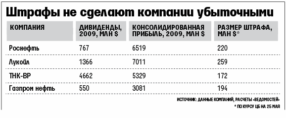 Компании не заплатили ни копейки. Они оспорили в судах как решение ФАС, так и начисленные штрафы. Быстрее и удачнее других процесс шел у ТНК-ВР, оспаривавшей первый штраф в 1,1 млрд руб. К октябрю 2009 г. компания выиграла у ФАС в трех судебных инстанциях в родном для себя Западно-Сибирском округе, но чиновники подали надзорную жалобу. Тем временем ФАС выиграла дело у «Лукойла» в Арбитражном суде Москвы, но судьба этого процесса, как и исков «Роснефти» и «Газпром нефти», зависела от решения Высшего арбитражного суда (ВАС) по делу ТНК-ВР.