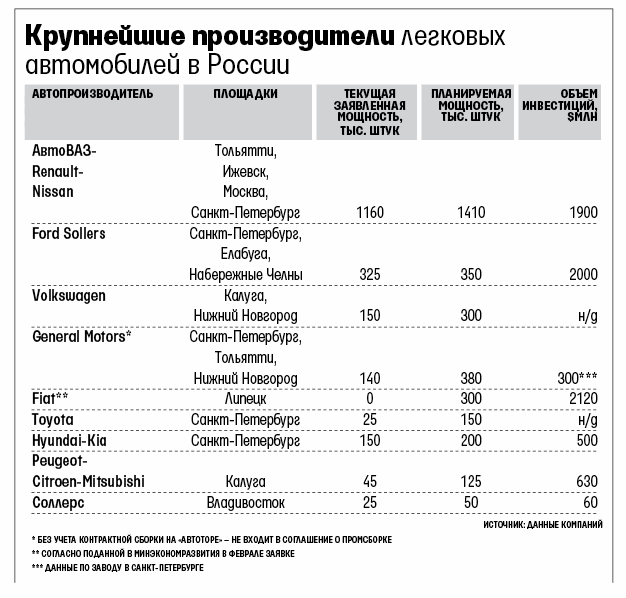 Представители «АвтоВАЗа», Renault, «Соллерса», General Motors подтвердили это «Ведомостям». Представитель Volkswagen от комментариев отказался, представитель Fiat не ответил на запрос «Ведомостей».