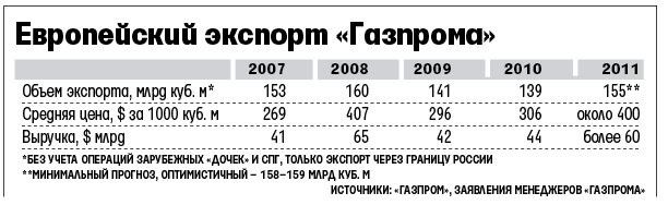 «Газпром» стоял перед выбором, что ставить во главу угла: объемы или выручку, напомнил Медведев, «Газпром» выбрал выручку, говорит он: «Думаю, что это был правильный выбор и итоги года подтвердили это». По словам Медведева, это не только мнение «Газпрома». По оценке консалтинговой компании PFC Energy, в 2010 г. совокупная скидка «Газпрома» для покупателей из Европы составила около 3%, сообщил топ-менеджер. А если бы было 30% (как, например, у норвежской Statoil), то для получения прошлогодней выручки «Газпрому» пришлось бы экспортировать 160 млрд куб. м по средней цене $266 за 1000 куб. м. По словам Медведева, это было нереально.