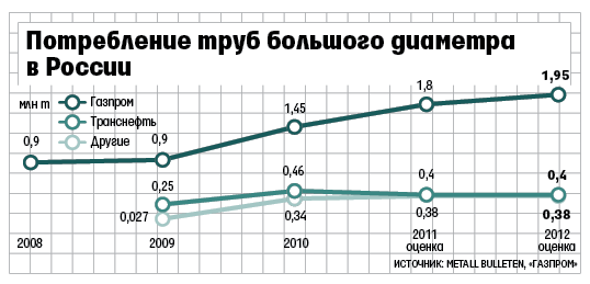 Но в рамках поставок этой организации трубники распределяли объемы между собой, добавляет он. Полной статистики поставок труб через СЕТП и другие организации «Газпрому» нет. Известно лишь, что в 2010 г. СЕТП поставил концерну 93,6% труб – 1,27 млн т из закупленных «Газпром комплектацией» 1,357 млн т.
