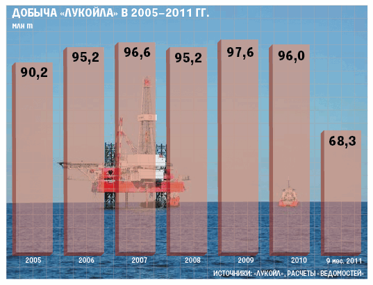 Еще в 2006 г. «Лукойл» рассчитывал, что через 10 лет прорвется в десятку крупнейших компаний мира, увеличив общую добычу углеводородов до 210 млн т условного топлива, а капитализацию – до $150–200 млрд. Теперь планы компании скромнее: следующее десятилетие «Лукойл» завершит с добычей 150–160 млн т условного топлива, нефти – до 110 млн т, рассказал вчера президент холдинга Вагит Алекперов.