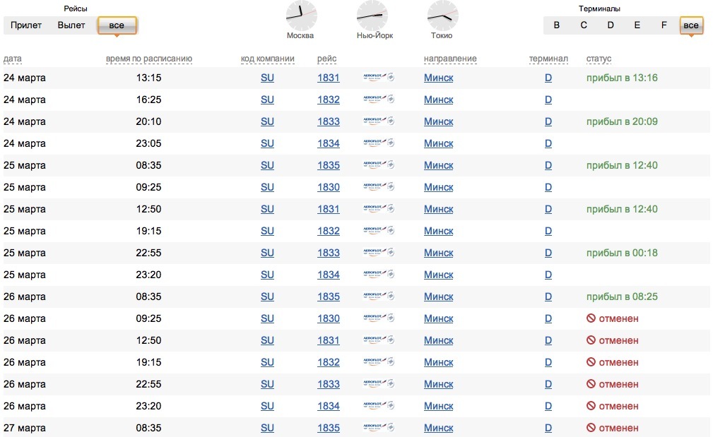 Отмененные рейсы в Минск в Шереметьево