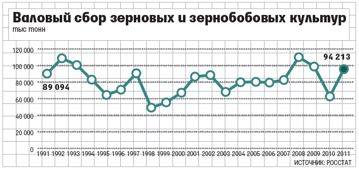 Но цены на зерновые на российском рынке под влиянием мировых цен идут вверх еще с мая. Котировки на Чикагской товарной бирже приближаются к абсолютным максимумам – $8 за бушель кукурузы с ближайшей поставкой, $9 за бушель пшеницы ($331 за тонну, что близко к рекордным значениям осени 2008 г.), отмечает исполнительный директор «Совэкона» Андрей Сизов. Цена тонны французской пшеницы (основного конкурента российской на мировых рынках), по словам гендиректора ИКАР Дмитрия Рылько, только за один вчерашний день прибавила $5 и составила $324.