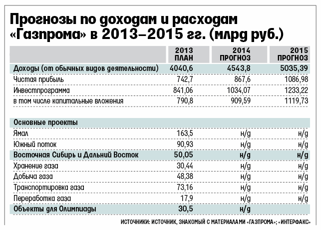 Впрочем, этот прогноз вряд ли сбудется. Ведь за девять месяцев 2012 г. чистая прибыль компании по РСБУ уже составила 510,3 млрд руб. При этом недавно правительство велело госкомпаниям направлять на дивиденды не менее четверти чистой прибыли. А Минфин даже подсчитал, сколько они перечислят в казну в ближайшие три года. Выплаты «Газпрома», по мнению чиновников, должны неуклонно расти – 92 млрд, 98 млрд и 105 млрд руб. соответственно. Это означает, что всего на дивиденды «Газпром» потратит в 2013 г. 240 млрд руб., в 2014 г. – 255 млрд руб. и в 2015 г. – 274 млрд руб.
