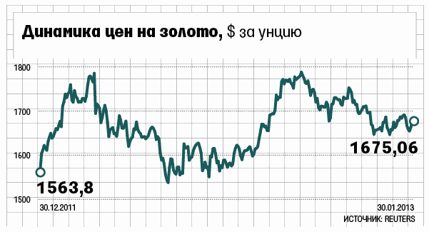 Аналитик БКС Олег Петропавловский отмечает, что 2012 г. стал лучшим для российских золотодобытчиков с 2000 г. «Но есть риск, что 2013 г. станет последним, когда цены на золото будут расти (см. график). Ювелирная промышленность сократила спрос еще в 2009 г. и не восстановила его, государства перестали активно пополнять золотые запасы, и единственные, кто наращивает закупки, – это частные и институциональные инвесторы», – предупреждает эксперт.
