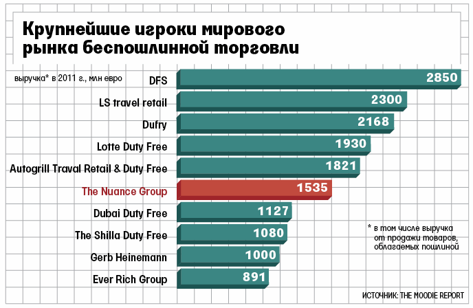 На конец 2011 г. The Nuance управляла 343 магазинами общей торговой площадью 75801 кв. м в 17 странах мира, говорится в отчете компании. Соглашение с ВВСС, сказано в сообщении компании, позволит Nuance выйти на российский рынок. Компания планирует расширять бизнес в России и рассматривает для сотрудничества и другие аэропорты, говорит руководитель отдела корпоративных связей The Nuance Group Минна Леванто.