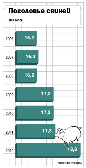 АЧС – инфекционная болезнь свиней, она вызывается вирусом и не подлежит лечению. Вирус не опасен для человека, но при его обнаружении в хозяйстве все поголовье подлежит уничтожению. Первая вспышка АЧС была зафиксирована в ноябре 2007 г. – в Чечне произошел падеж диких кабанов. С того момента, по данным Россельхознадзора, было зарегистрировано 405 очагов АЧС, при этом 188 из них были зафиксированы в личных подсобных и фермерских хозяйствах, 128 вспышек приходилось на диких кабанов и только 64 – на сельхозпредприятия.