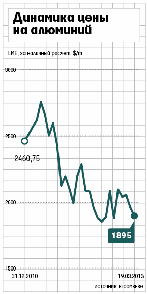 Алюминиевая отрасль переживает не лучшие времена (см. график). Из-за низких цен на металл крупнейшие компании сокращают объемы производства. UC Rusal (в ней En+ владеет 48,13%) в этом году планирует закрыть производство 300 000 т алюминия (около 7% от мощностей компании).