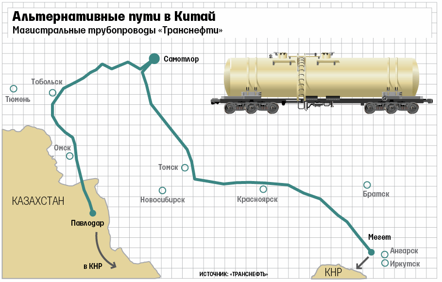 Демин утверждает, что в соглашении между Россией и Китаем о дополнительных поставках нефти нет схемы транзита через Казахстан. «Там есть необходимость рассмотреть возможность поставок на нефтеперерабатывающие заводы Западного Китая», – говорит Демин. Помимо приоритетного направления поставок нефти в Китай по нефтепроводу Сковородино – Мохэ могут быть определены иные направления, сказал собеседник.