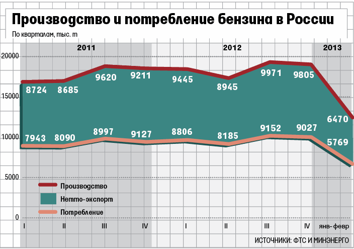 Причина дисбаланса – массированные поставки в Россию белорусского бензина, считает Аркуша. В этом году Россия договорилась о поставках из Белоруссии 3,3 млн т нефтепродуктов. Это беспрецедентная цифра. В прошлом году, по данным Минэнерго и Федеральной таможенной службы, весь импорт составил чуть более 200 000 т, а чистый экспорт нефтепродуктов из России – чуть менее 3 млн т. Поставки бензина и дизтоплива из Белоруссии уже начались. «Его везут в центр, на Юг и на Северо-Запад. Все заводы, которые работают на этих рынках, вынуждены поворачивать на восток, – говорит директор по развитию бизнеса «Аналитики товарных рынков» Михаил Турукалов. – То есть хоть бензин пришел только в западные регионы, но отразилось это на всем рынке».