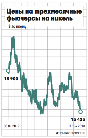 «Норникель» рассчитал бюджет на 2013 г., исходя из цены в $18 800 за 1 т никеля. А металл стоит около $15 400/т. Компания справится благодаря самой низкой среди конкурентов себестоимостиВчера гендиректор и основной владелец «Норникеля» Владимир Потанин заявил, что бюджет компании сверстан на 2013 г. из расчета $18 800 за 1 т никеля (его слова передал «Интерфакс»). При этом тонна никеля на Лондонской бирже металлов в среду стоила $15 425. На продажи никеля в 2012 г. пришлось 47% выручки компании – $5,7 млрд.