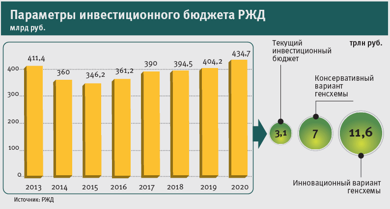 На научно-техническом совете РЖД рассматривались вопросы актуализации генеральной схемы развития железнодорожного транспорта. Мы исходили из двух вариантов развития экономики: инновационного и консервативного. Разница в 4 трлн руб. Сумма, казалось бы, огромная. Но 1,25 трлн руб. отрасль зарабатывает за год.