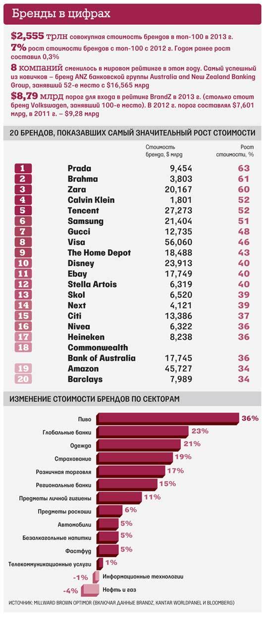 При оценке стоимости брендов учитываются как их восприятие, так и финансовые показатели