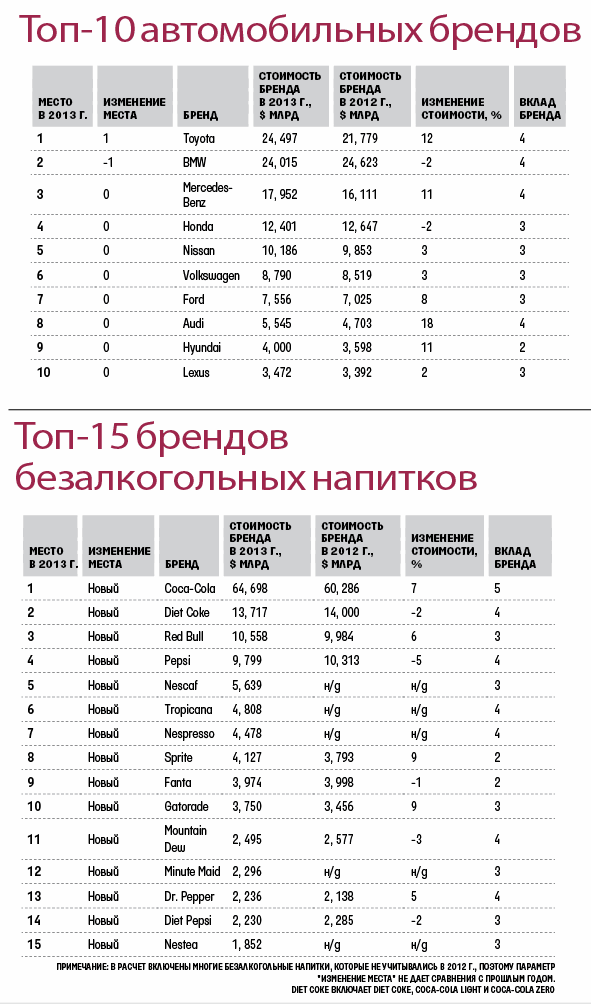 Для составления рейтинга используется долларовая стоимость брендов, которая представляет собой оценку сегодняшней стоимости будущих денежных поступлений от использования бренда.