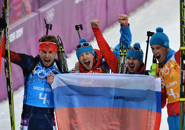Российские биатлонисты выиграли золото в эстафетной гонке