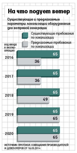 Производители оборудования, девелоперы и генерирующие компании попросили НП «Совет рынка», Минэнерго и Минпромторг изменить правила поддержки ветряной генерации на оптовом рынке, которые были утверждены правительством в середине 2013 г. За прошедший год участники рынка детально изучили ситуацию, крупные иностранные производители оборудования провели переговоры с российскими партнерами и теперь точно ясно, что по принятым правилам механизм работать не будет, говорит венчурный партнер Bright Capital Илья Павлов (консультирует ГК «Энергия солнца», которая должна построить 105 МВт ветряной генерации). Протокол совместного совещания, направленный в ведомства (есть у «Ведомостей»), подписали и отправили на прошлой неделе 20 структур, среди них «Интер РАО инжиниринг», «Русгидро», «Евросибэнерго», «ВетроОГК», «Атомэнергомаш», американская AMSC, «Хевел», ХК «Композит» и др.