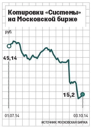 9 июля 2014 г. (когда из реестра исчезла доля Шамолина) 1 акция АФК «Система» на Московской бирже стоила 47,5 руб., 18 июля (когда то же самое произошло с пакетом Дроздова) - 39,84 руб., в минувшую пятницу, на момент закрытия торгов, цена составляла всего 15,2 руб. Таким образом, с 9 июля стоимость бумаги упала на 68%, а с 18 июля - более чем на 61,8%.