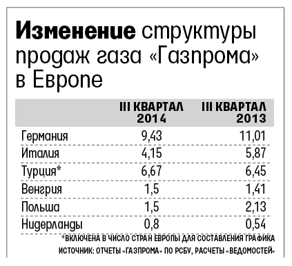 Из-за проблем с Украиной «Газпром» несет потери в Европе. В сентябре компания снизила поставки некоторым европейским клиентам. Реверс на Украину, как и добивался «Газпром», сократился. Но упал и общий экспорт концерна: за девять месяцев - на 6% до 148,7 млрд куб. м, а в III квартале - почти на треть до 39 млрд куб. м. Лишь несколько крупных клиентов увеличили покупки (см. график). Европейские клиенты также требуют пересмотра контрактов. В августе арбитраж удовлетворил иск итальянской Edison, но вернуть «Газпром» должен лишь около трети от суммы иска (она не раскрывается), сообщил концерн в отчете. Продолжается арбитраж с немецкой E.On, пересмотр контракта инициировала польская PGNiG.