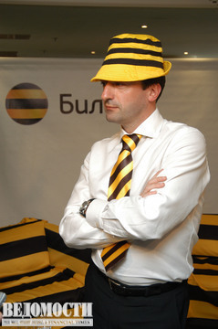Александр Изосимов, генеральный директор "Вымпелкома" в фирменной шапке и галстуке