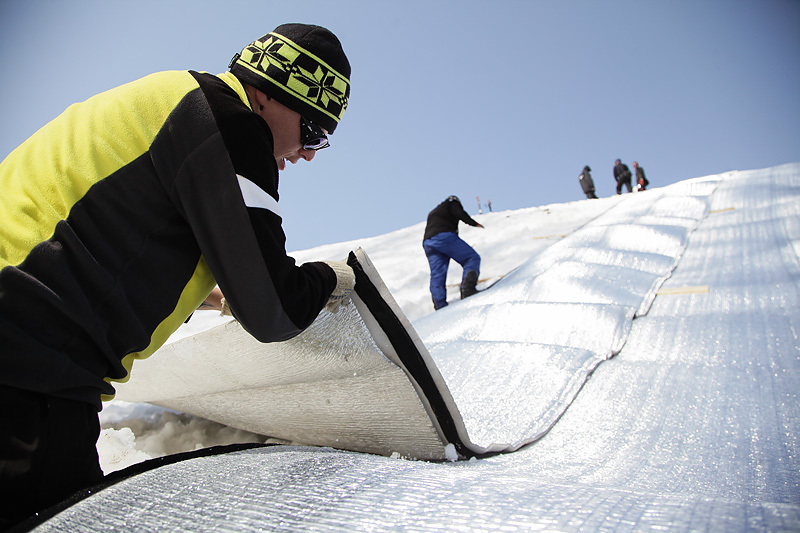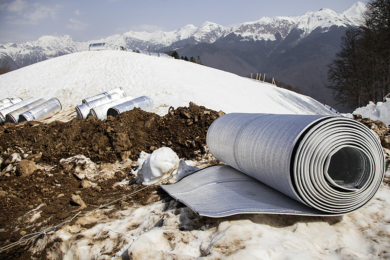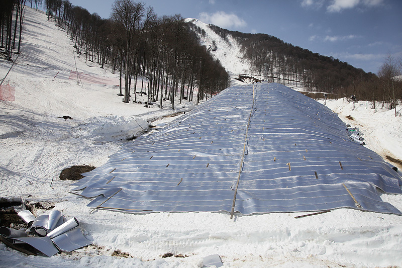 Чтобы обеспечить сочинскую Олимпиаду снегом даже в случае очень теплой зимы (какая была, например, в 2012/13 г.), оргкомитет «Сочи-2014» вместе с инвесторами реализуют программу «Сочи-2014: гарантированный снег». Эта программа включает накопление снега в сезон перед Играми, его хранение летом, а также отработанную на тестовых соревнованиях схему транспортировки снега на спортивные объекты горного кластера.
