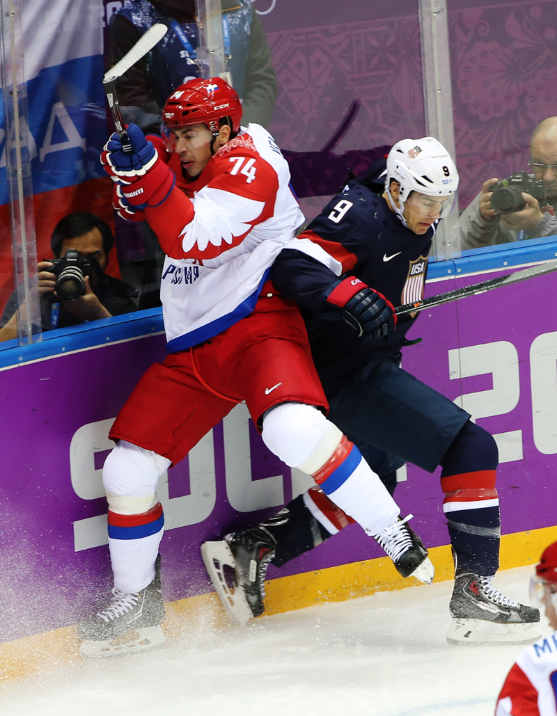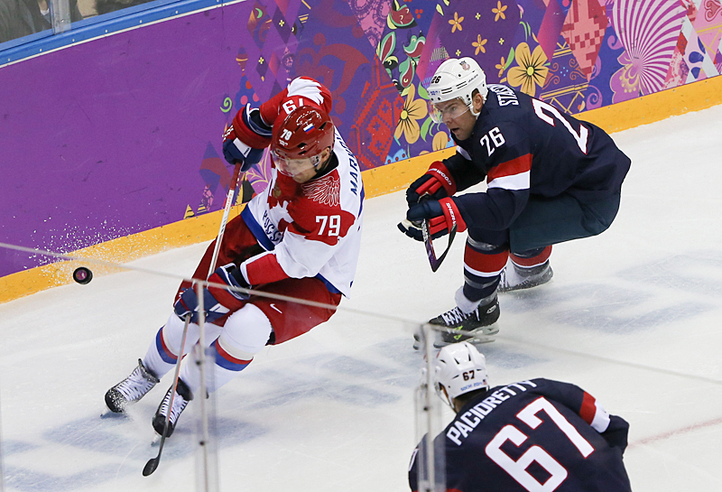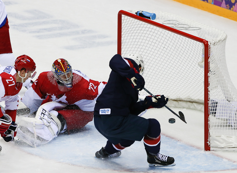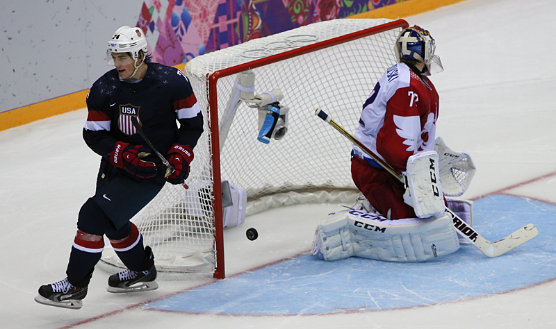 Мужская сборная России по хоккею по буллитам потерпела поражение от команды США на Олимпиаде в Сочи. Встреча во дворце спорта «Большой» завершилась со счетом 3:2 в пользу американцев, в составе которых шайбы забросили Кэм Фаулер (37-я минута) и Джо Павелски (50-я), в составе россиян отличился Павел Дацюк (30-я, 53-я). Победный буллит на счету Ти Джея Оши.