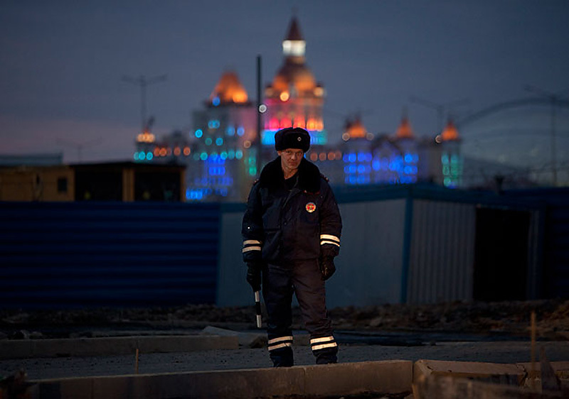 Полицейские, переодетые на Олимпиаде в форму от Bosco без знаков различия (справа) и казак - дружинник