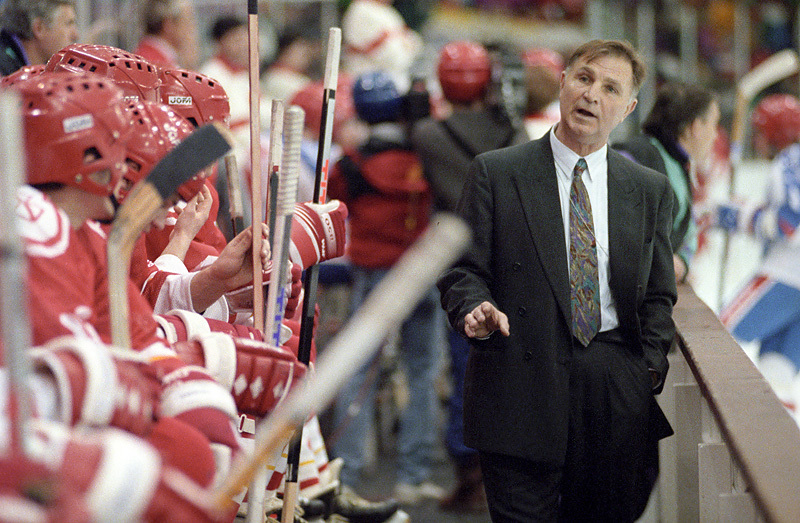 Тренер сборной СССР Виктор Тихонов во время тренировки, 1987 г. ИТАР-ТАССВиктор Тихонов был символом хоккейного ЦСКА и сборной СССР, знаменитой "красной машины". Под его руководством в клубе и сборной играли Вячеслав Фетисов, Алексей Касатонов, Владимир Крутов, Игорь Ларионов, Сергей Макаров, Вячеслав Быков, Андрей Хомутов, Валерий Каменский, Сергей Федоров, Александр Могильный, Павел Буре и другие замечательные хоккеисты.