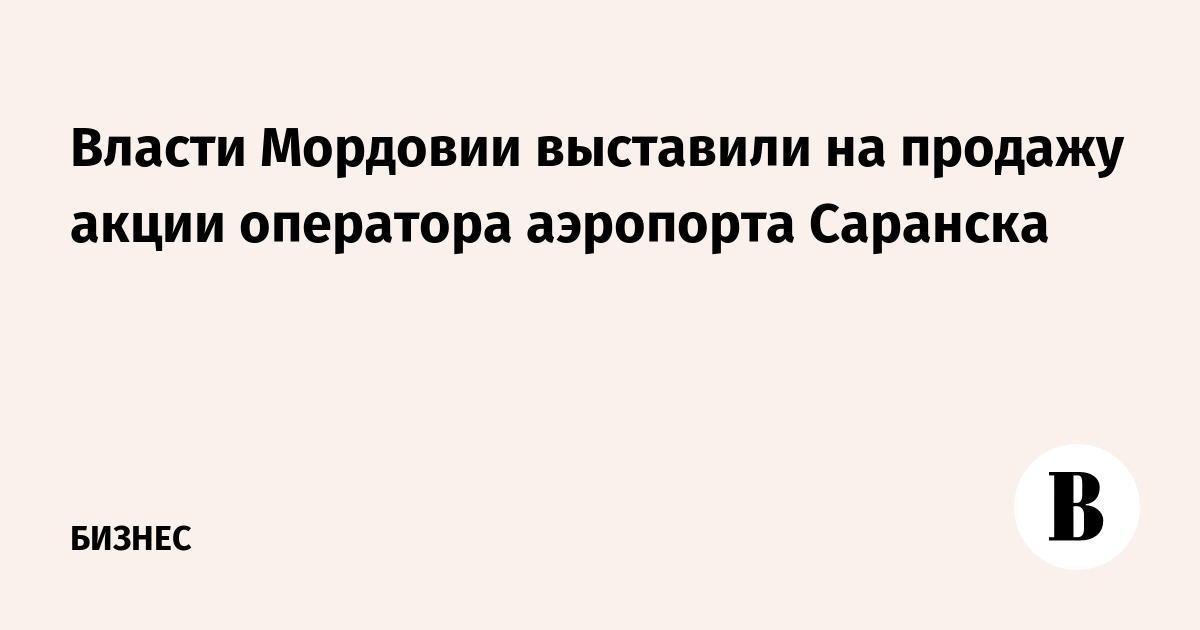 Правительство Мордовии выставило на продажу акции оператора аэропорта Саранска – АО «Авиалинии Мордовии», сообщает ТАСС со ссылкой на заявление гендиректора компании Александра Кистайкина. По его словам, приватизация оператора положительно повлияет на развитию предприятия – в частности, ускорит создание постоянного пограничного пункта пропуска, позволяющего аэропорту принимать международные рейсы.